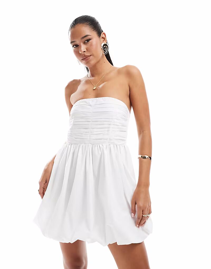 Мини-платье-бандо Vero Moda с пышным подолом белого цвета