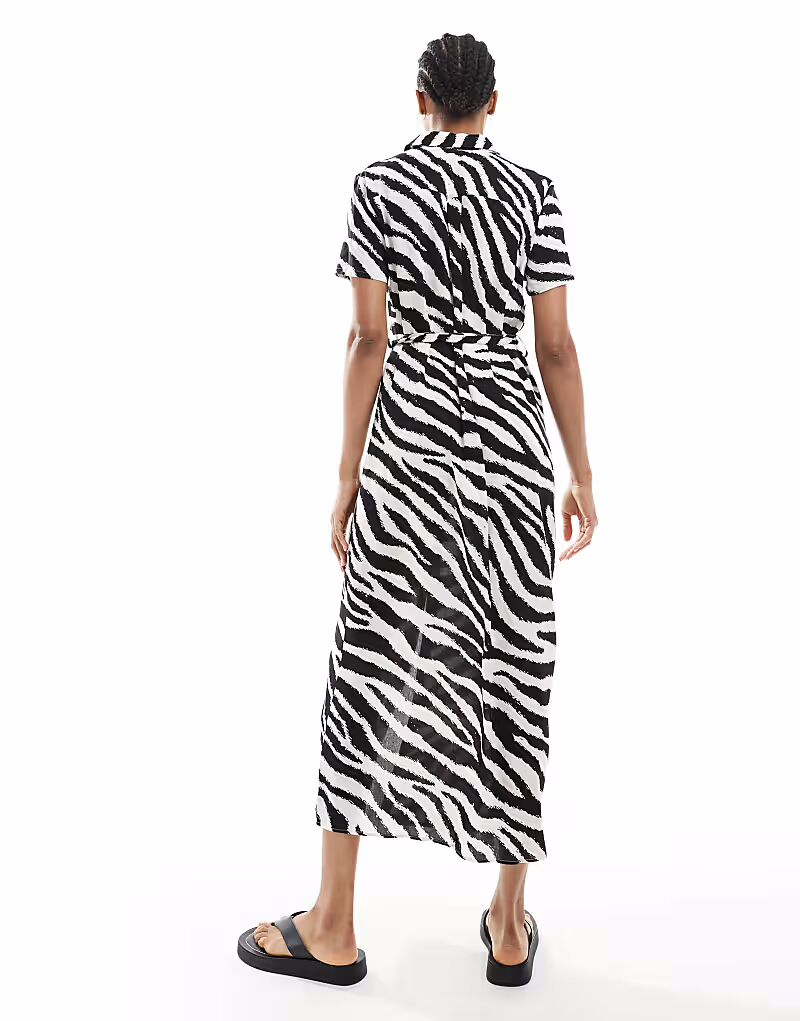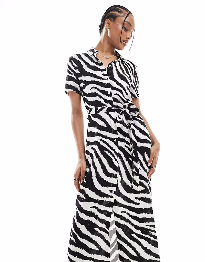Vero Moda Tall Easy длинное платье-рубашка на пуговицах с принтом зебры