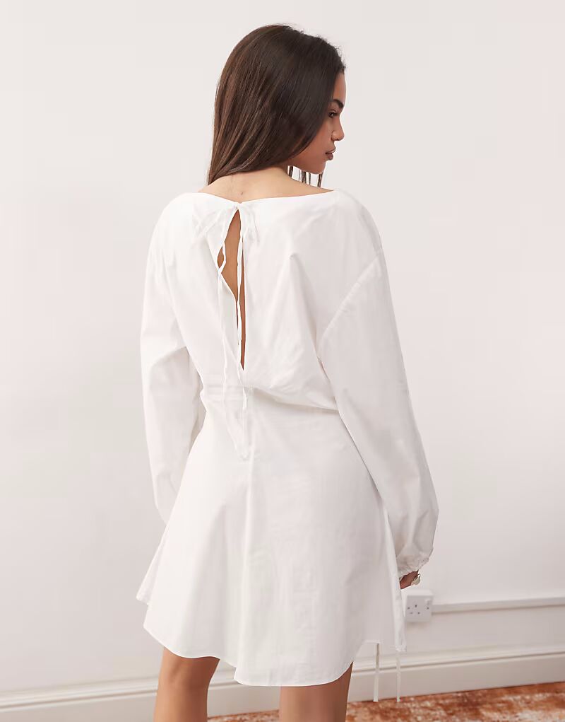 Платье-рубашка мини с длинными рукавами в будние дни белого цвета Weekday