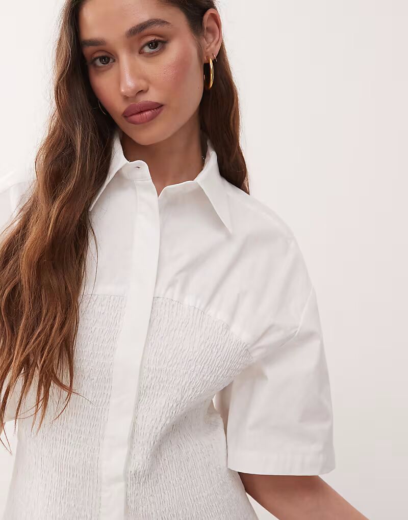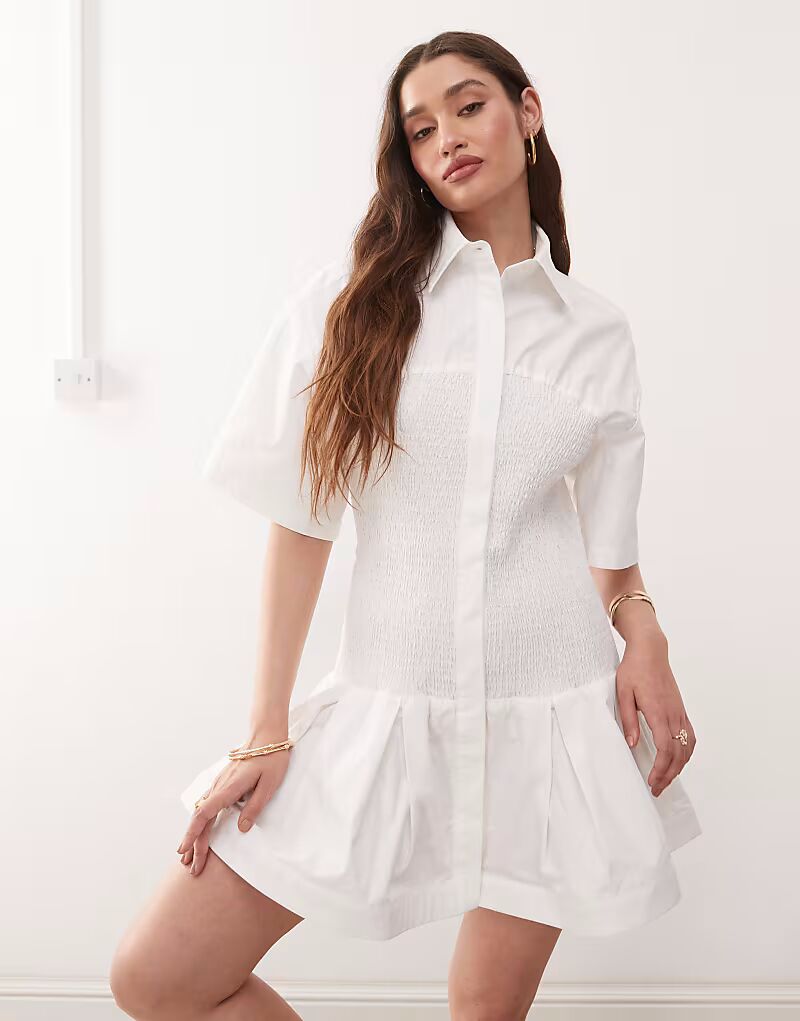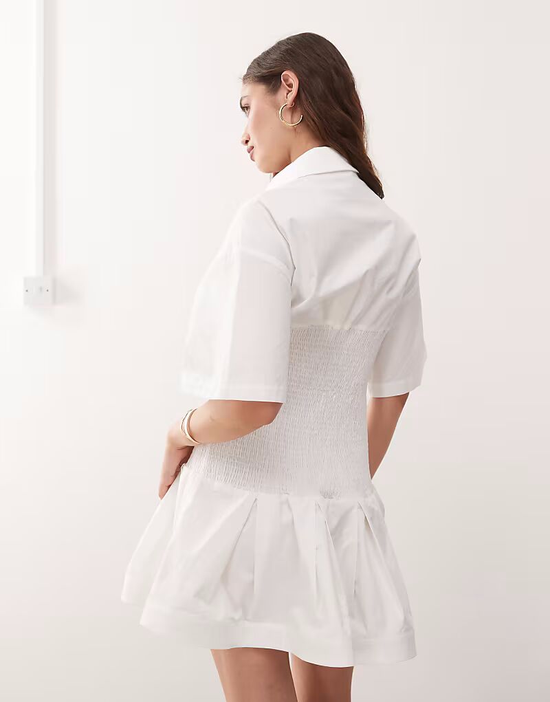 Платье-рубашка мини Amy Lynn с присборенным лифом белого цвета