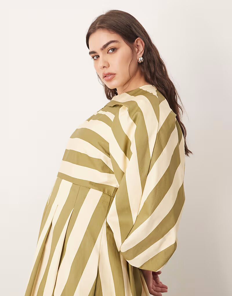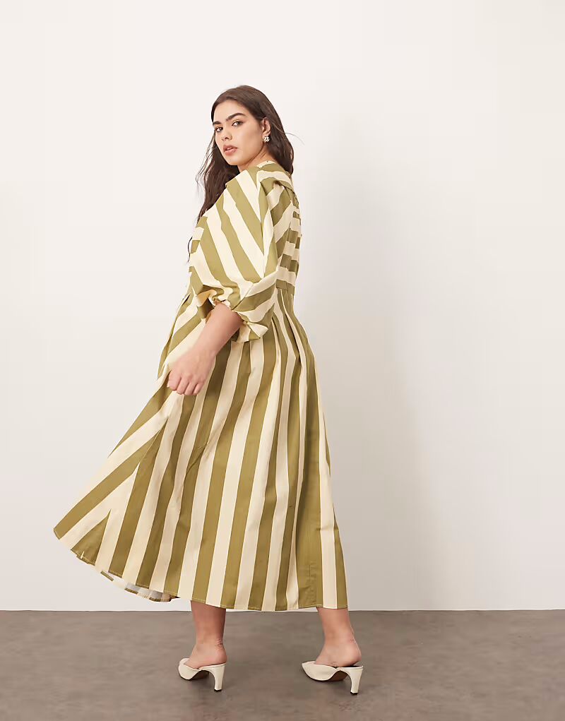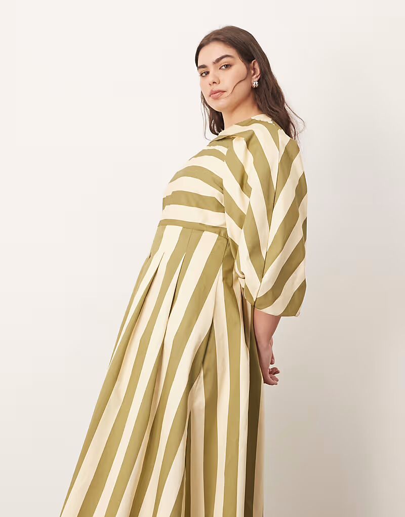 Платье миди ARRANGE Curve с плиссировкой в ​​оливковую полоску
