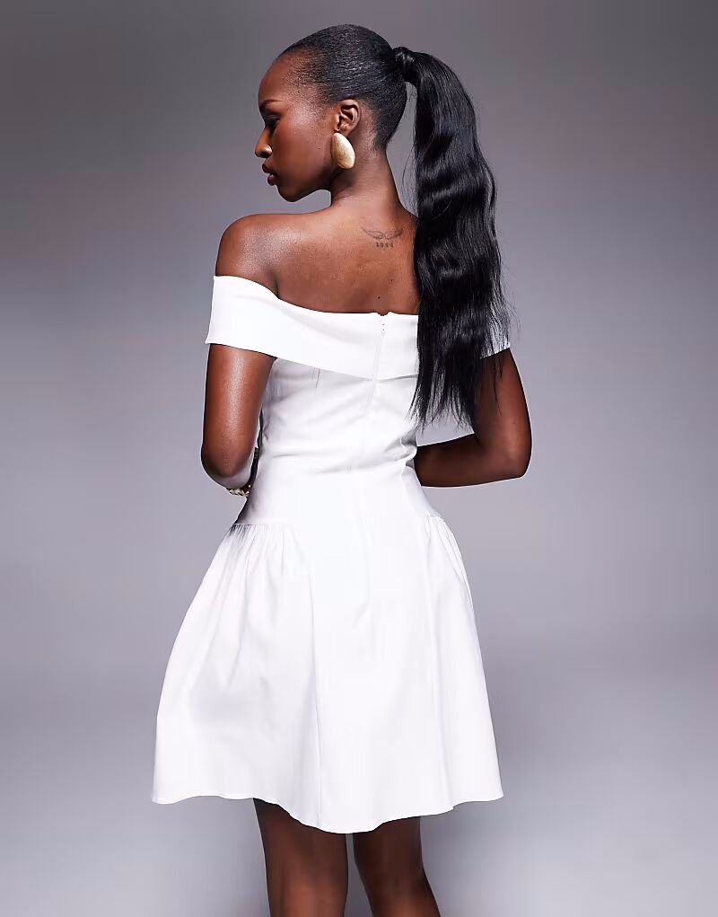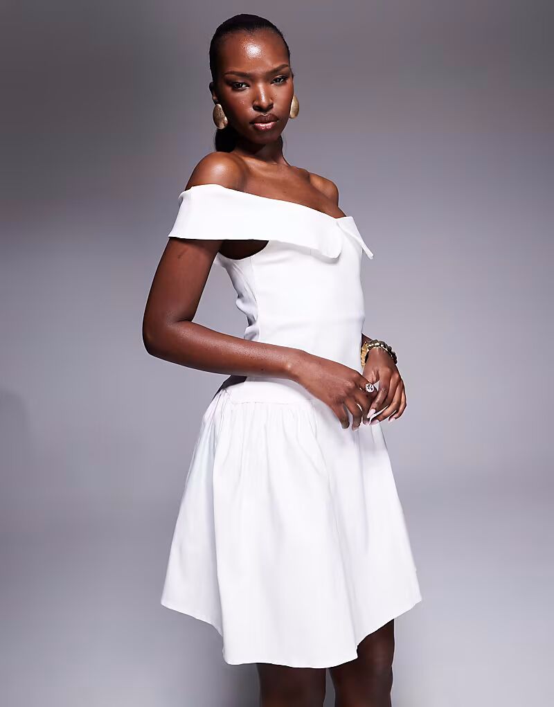 Платье мини-платье Vesper bengaline bardot с отворотом белого цвета