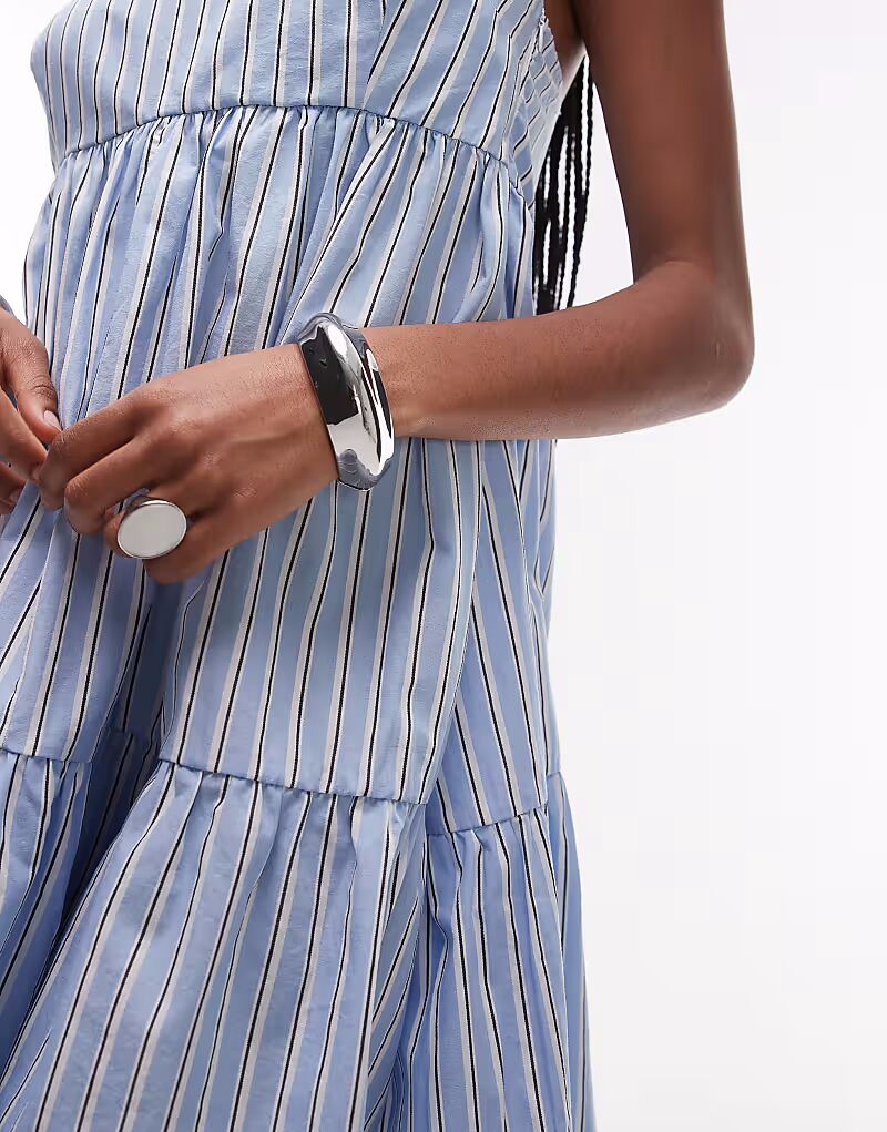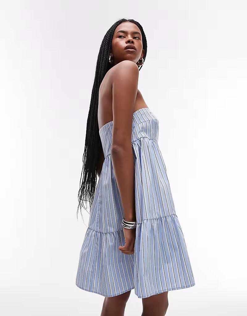 Трапециевидное многоярусное мини-платье ASOS DESIGN в синюю полоску