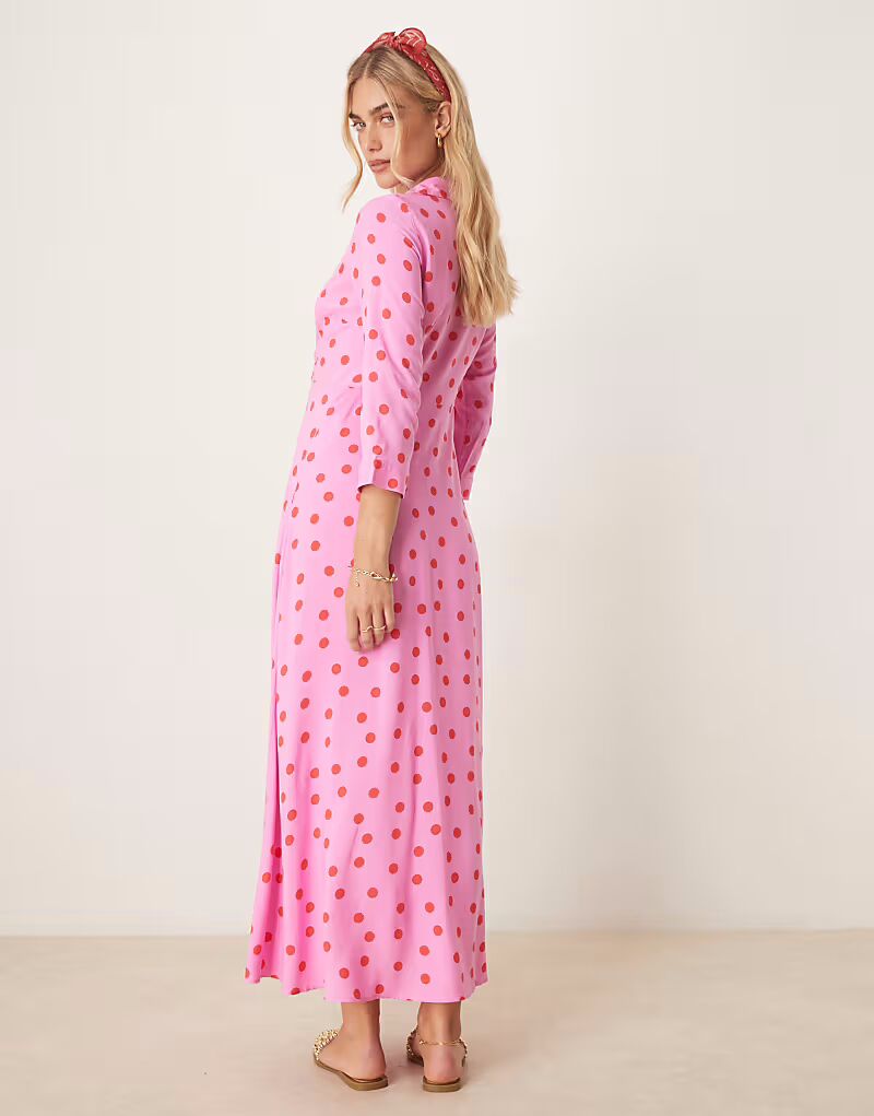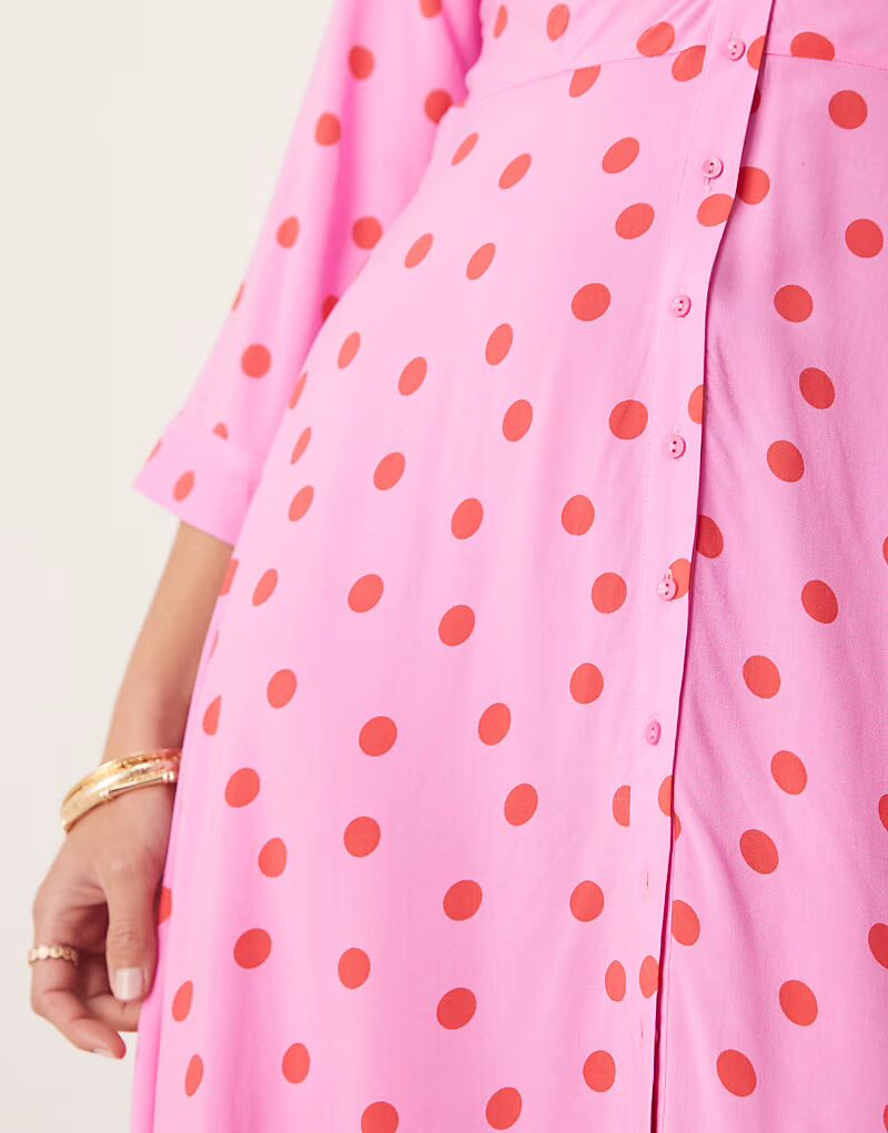 Платье-рубашка макси YAS с принтом в розовый и красный горошек