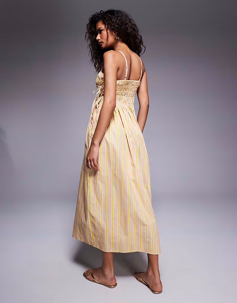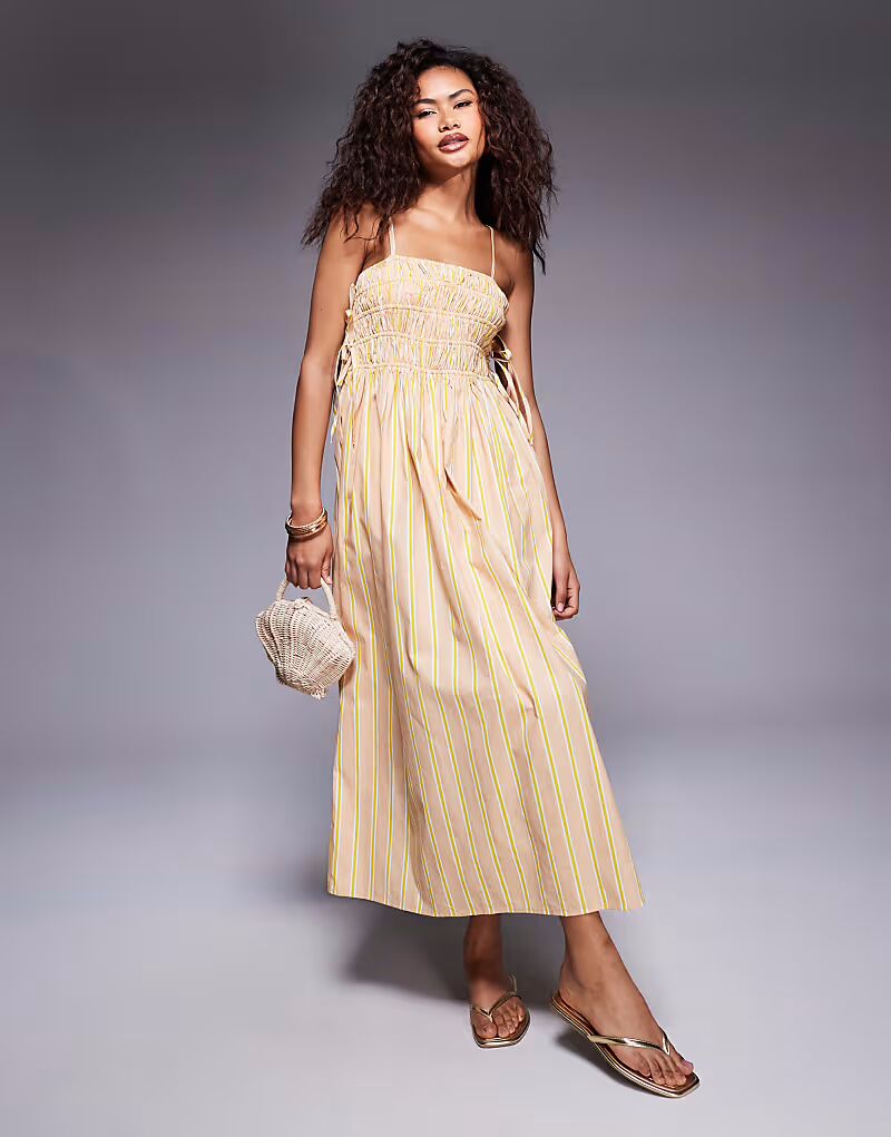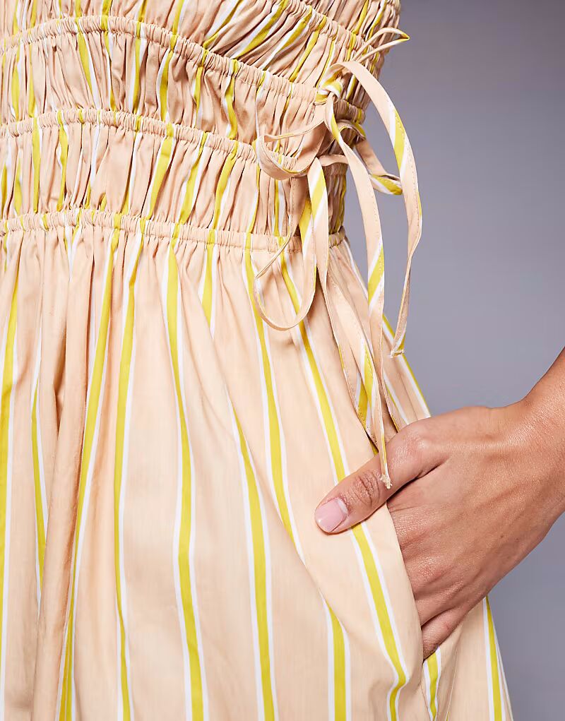 Платье миди River Island со сборками и бретельками в каменном цвете