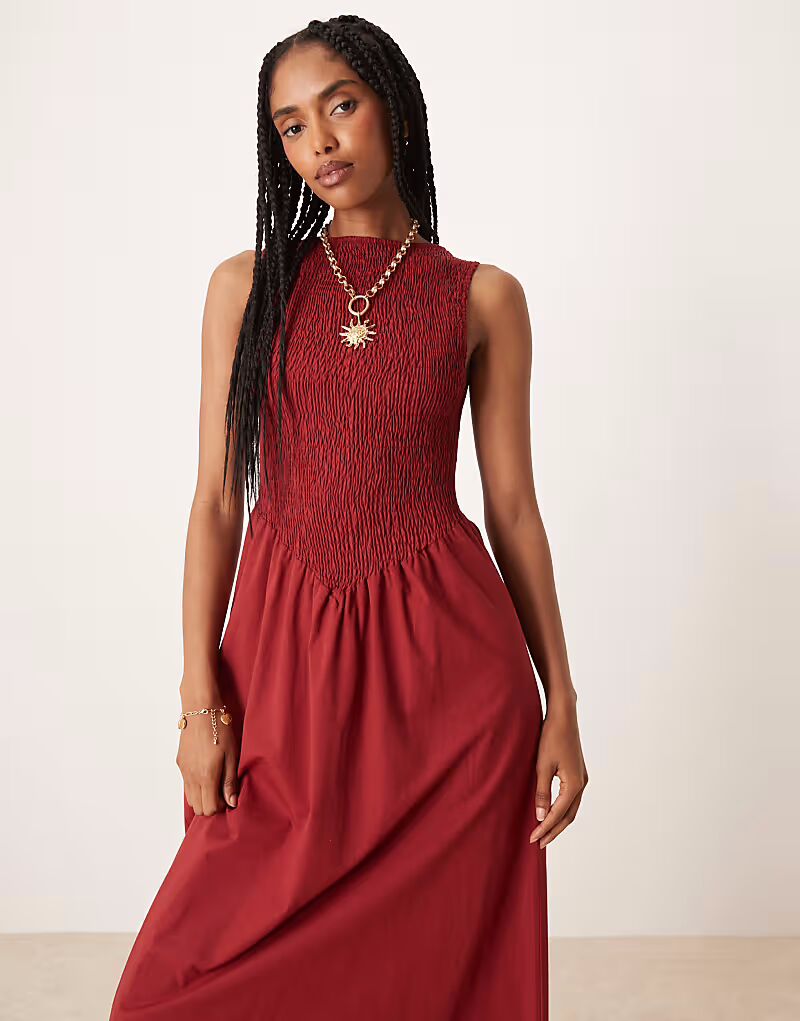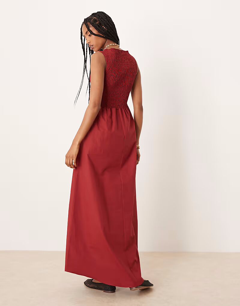 Платье макси с присборенным лифом ASOS DESIGN красного цвета 5 861₽