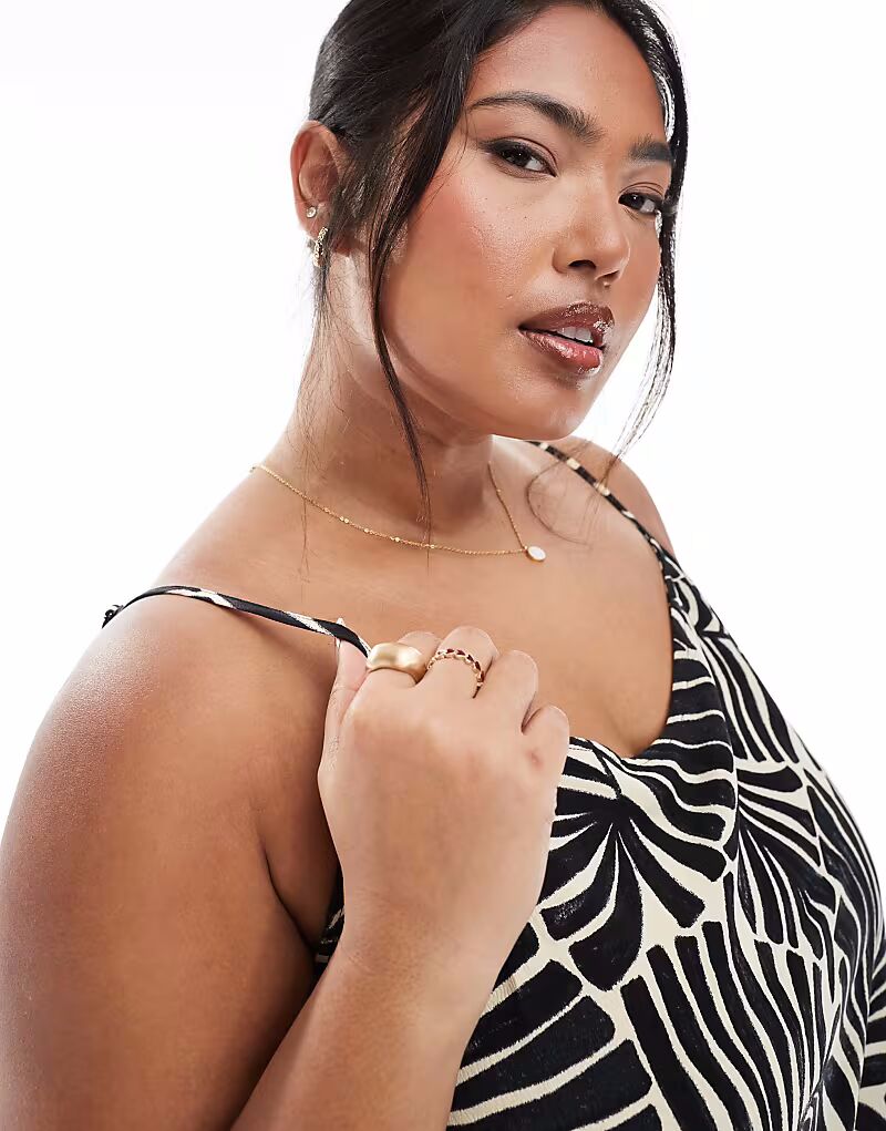 Платье макси ONLY Curve на бретелях с черным пальмовым принтом 5 490₽