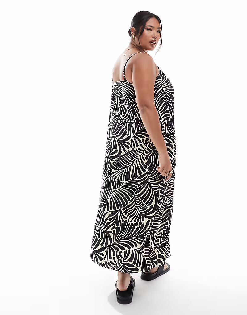 Платье макси ONLY Curve на бретелях с черным пальмовым принтом