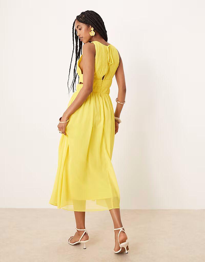 Платье мидакси Never Fully Dressed с вырезом желтого цвета
