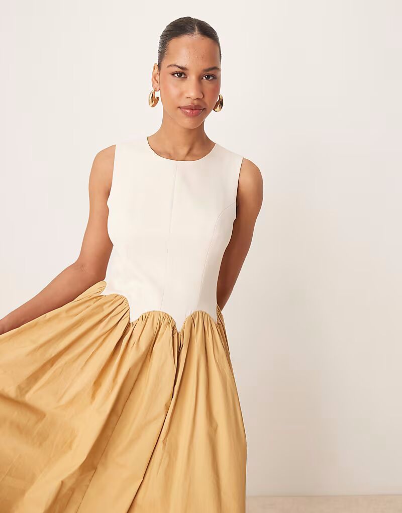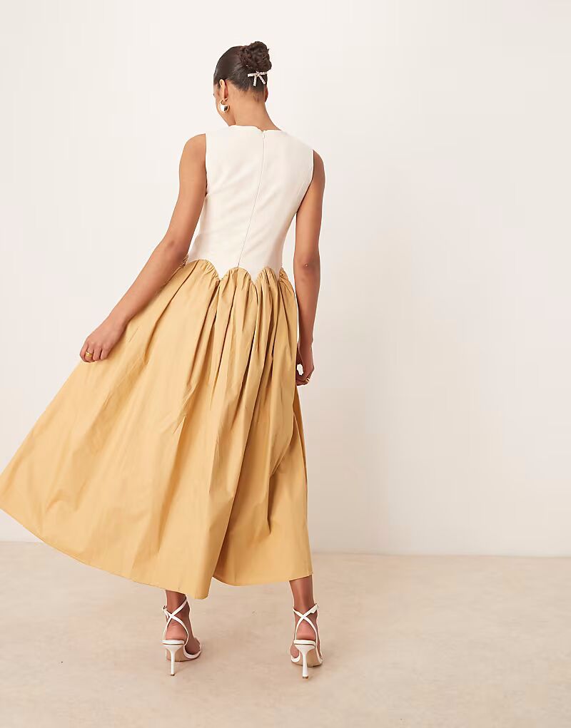Платье мидакси Never Fully Dressed с контрастным подолом цвета верблюжьей шерсти