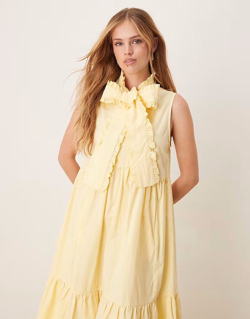 Рубашка миди с бантом Sister Jane x ASOS лимонного цвета