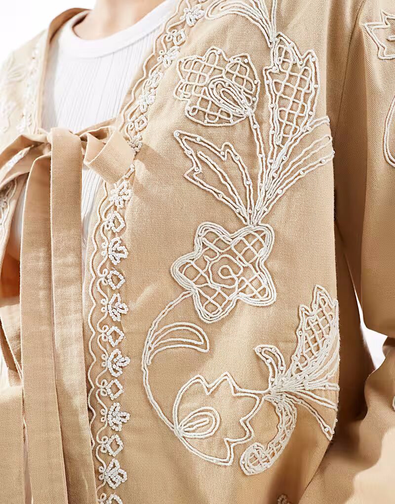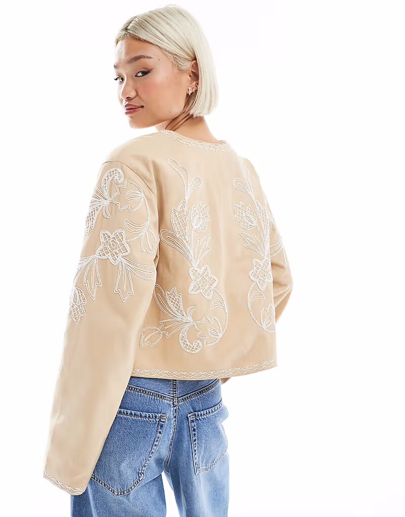 Укороченная куртка ASOS DESIGN с вышитым бантом спереди в каменном цвете