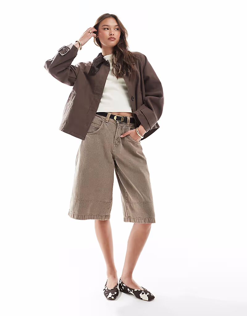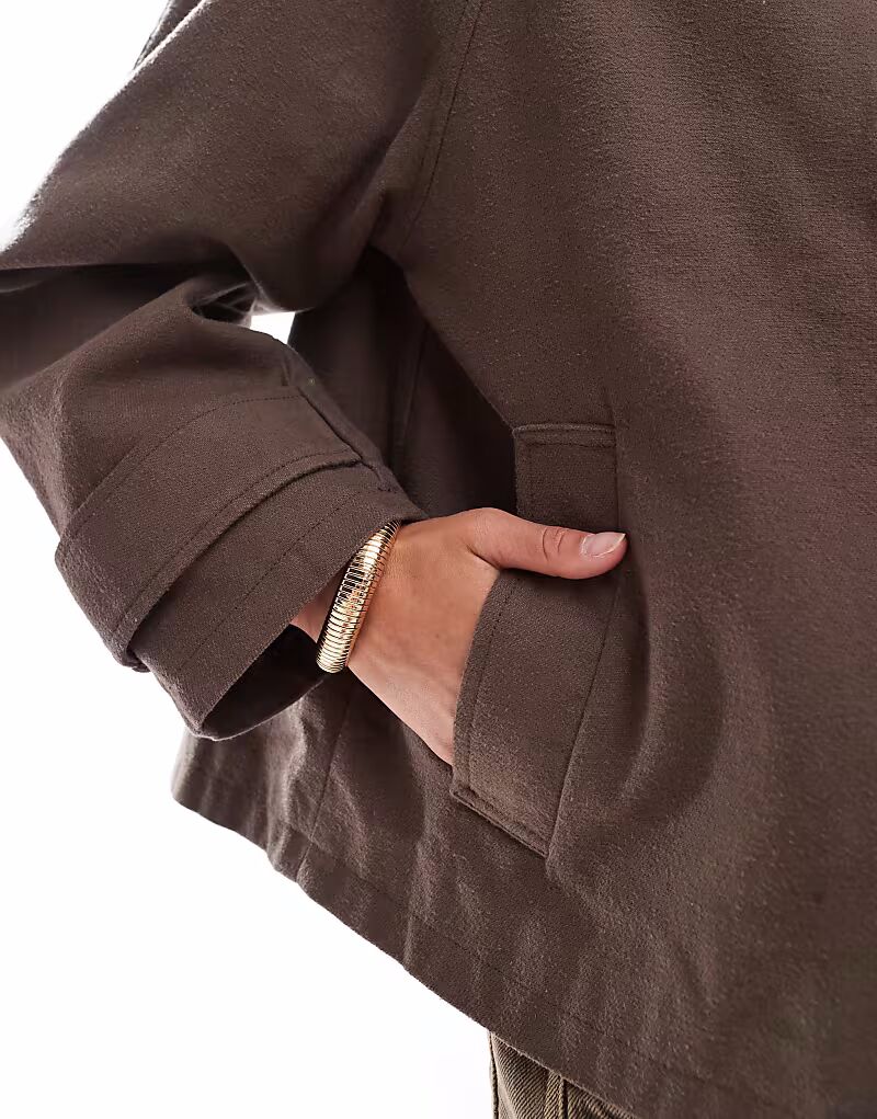 Куртка-амбар ASOS DESIGN с контрастным воротником цвета мокко