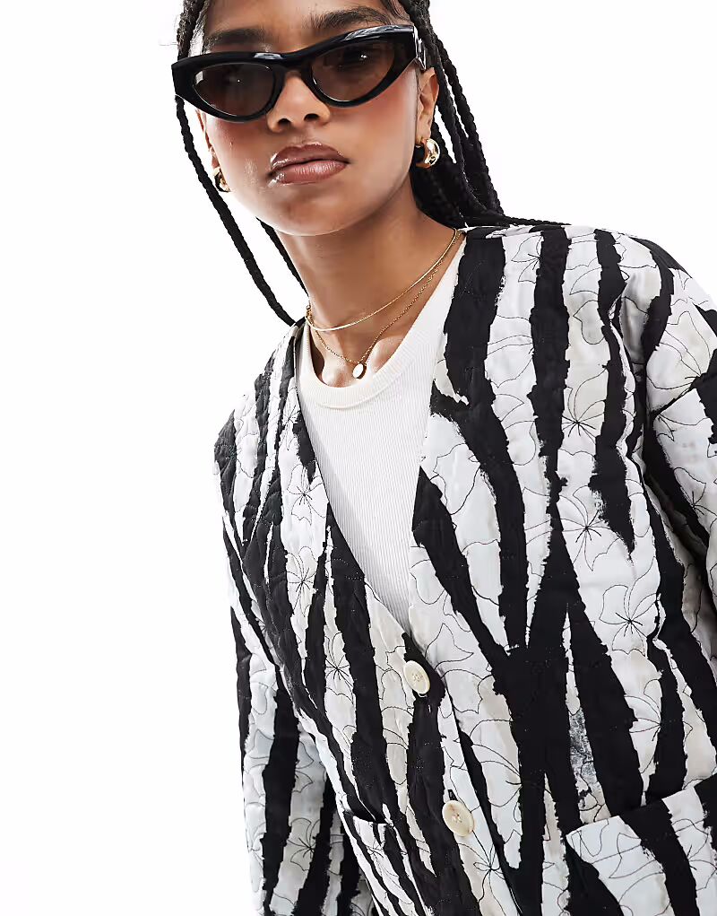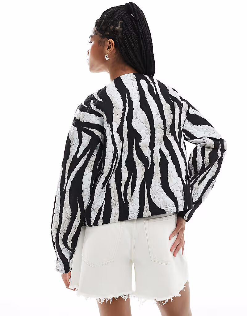 Укороченная стеганая куртка Vero Moda с монохромным принтом зебра
