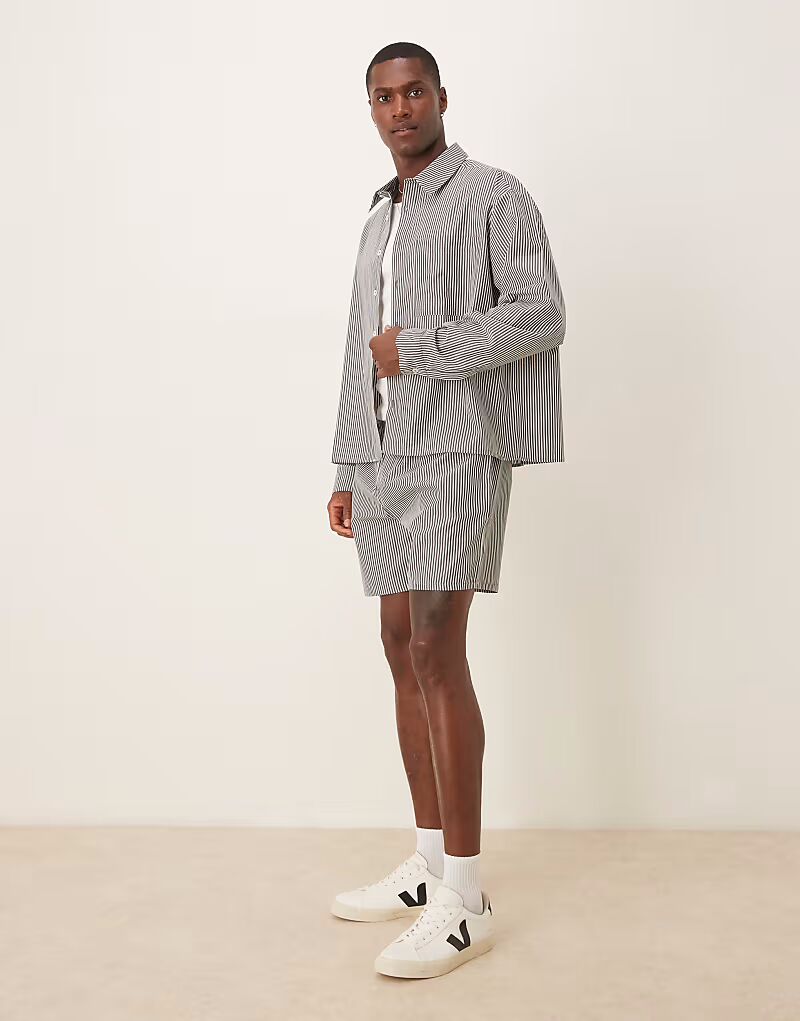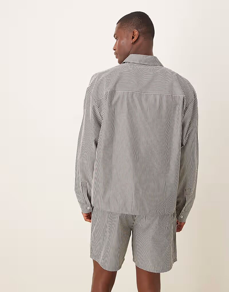 ASOS DESIGN coord свободная рубашка в полоску серого цвета