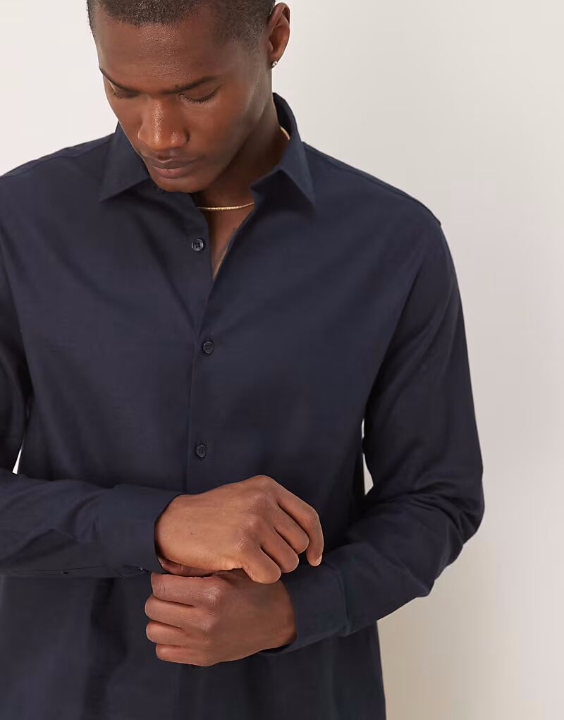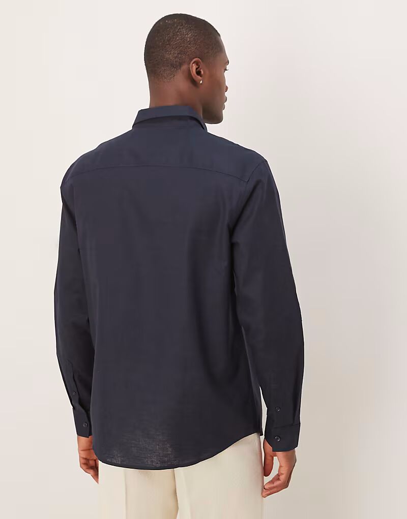 Рубашка классического льна ASOS DESIGN темно-синего цвета