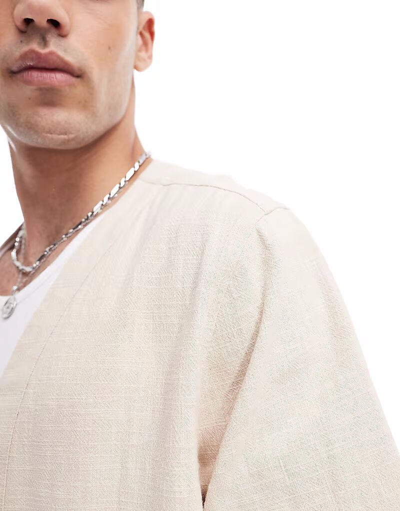 Текстурированная рубашка-кимоно ASOS DESIGN в каменном цвете