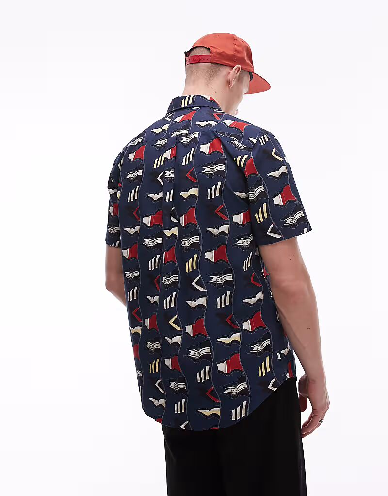 Рубашка Tommy Hilfiger Poplin All-over Flag в темно-синем цвете