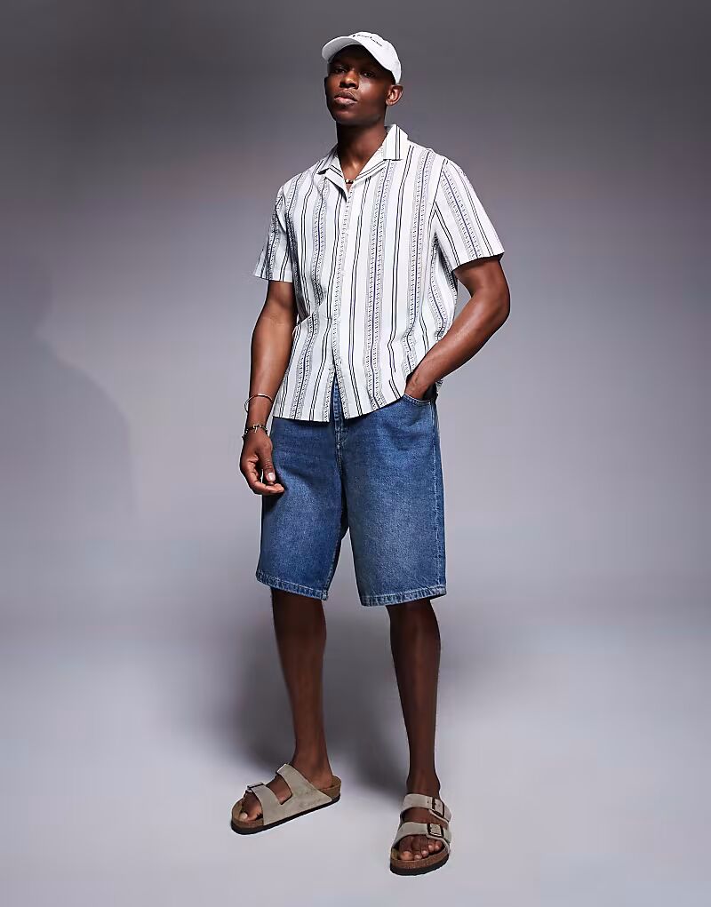 Рубашка ASOS DESIGN Regular Revere в синюю полоску