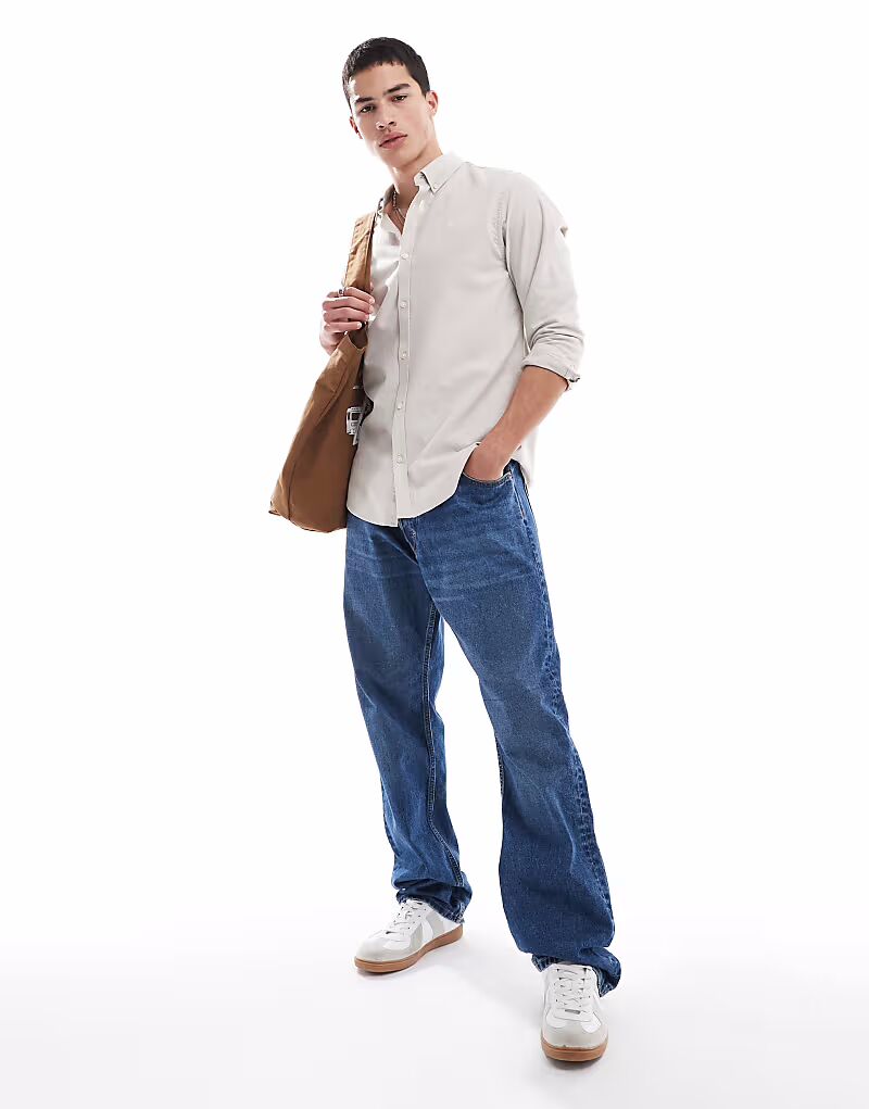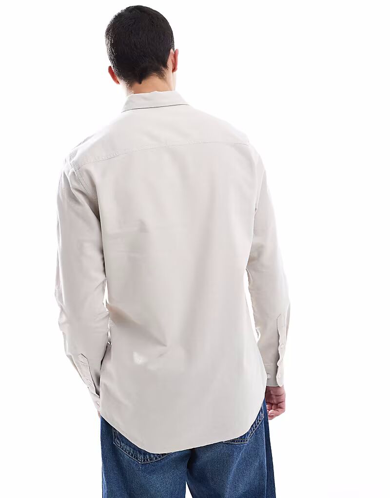 Потертая рубашка оксфорд с длинными рукавами в каменном цвете Threadbare