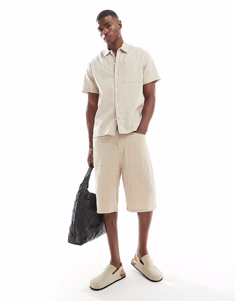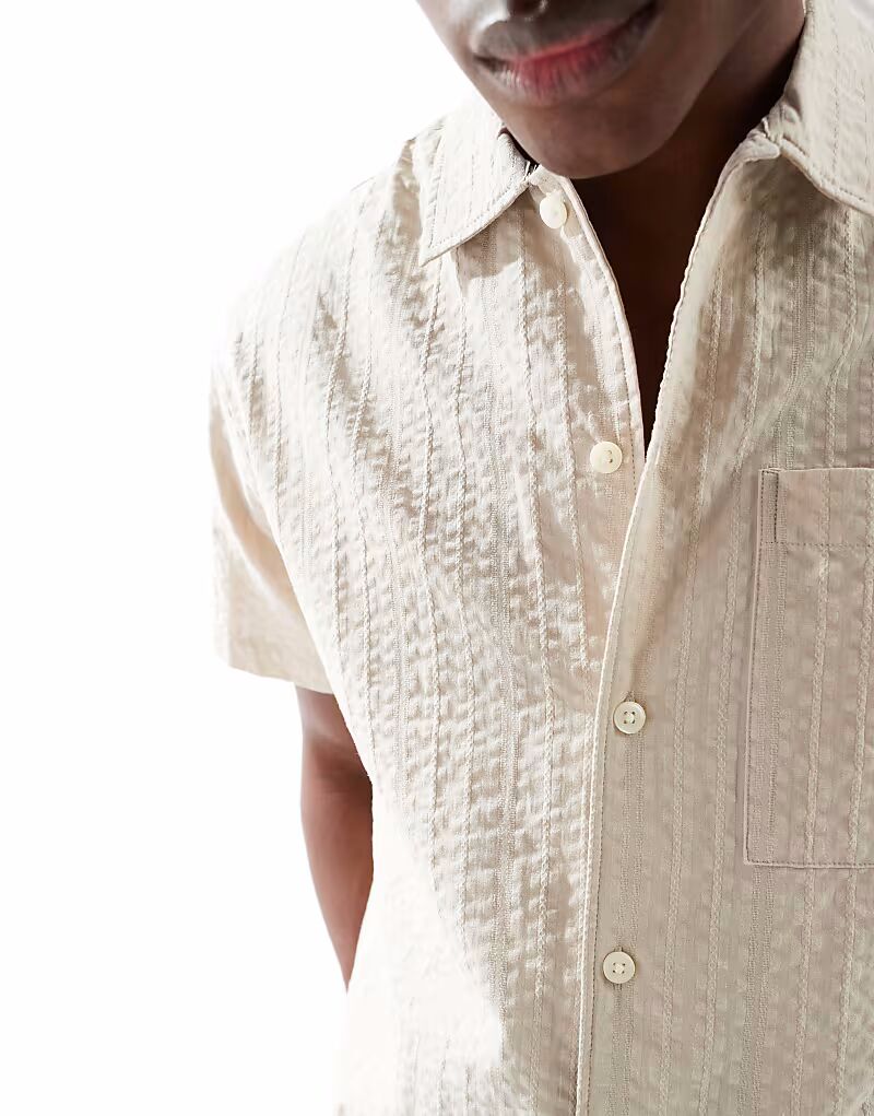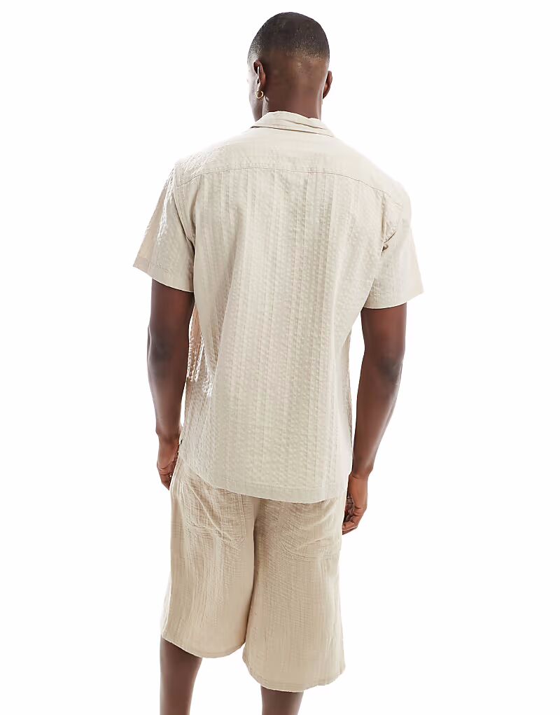 Рубашка Jack & Jones Premium из ткани сирсакер кремового цвета