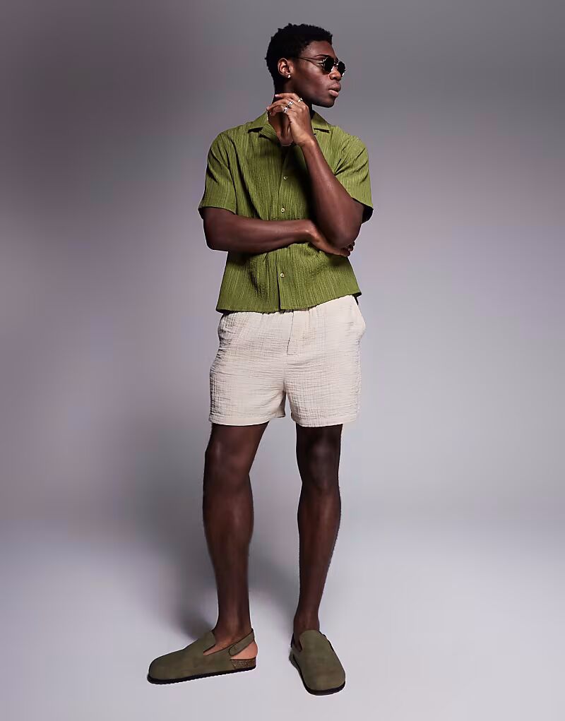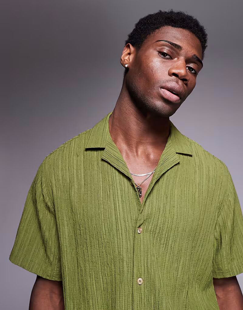 Текстурированная рубашка ASOS DESIGN Revere цвета хаки