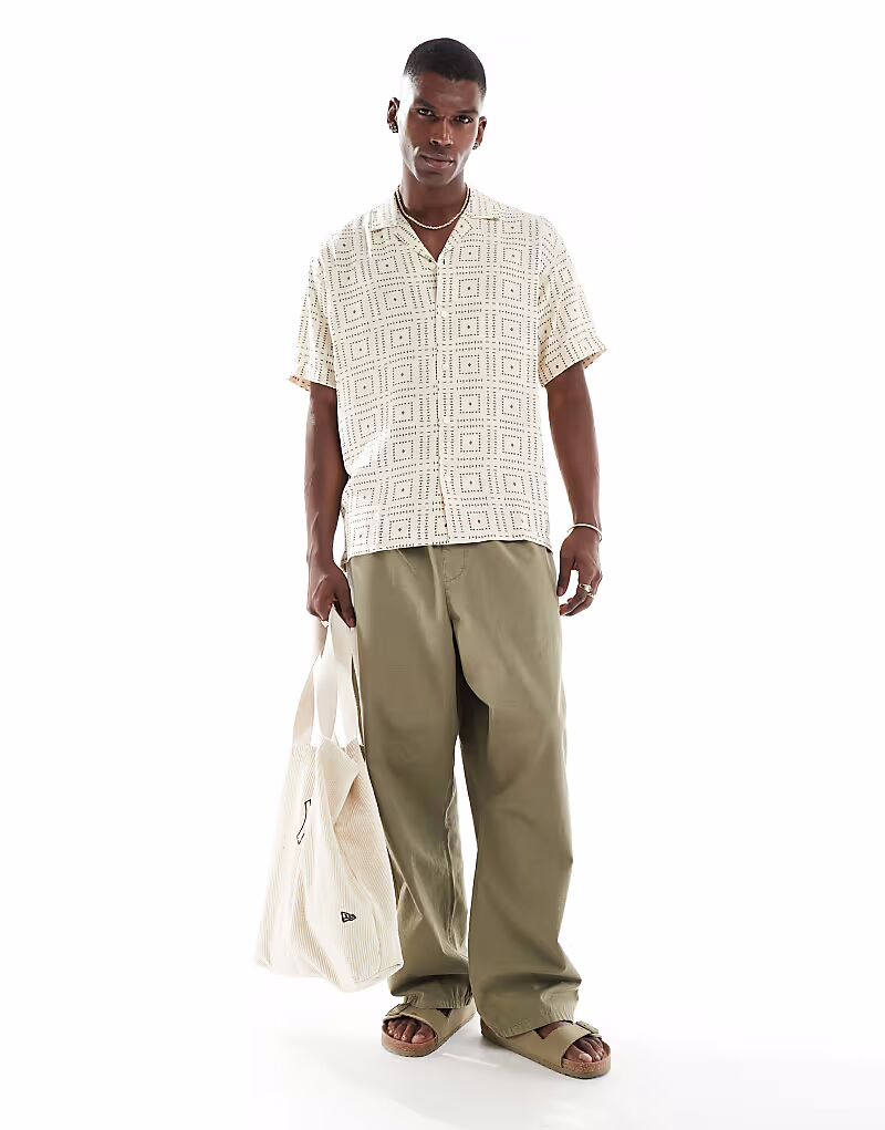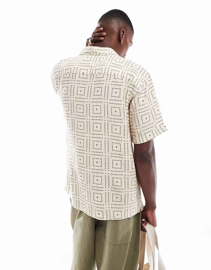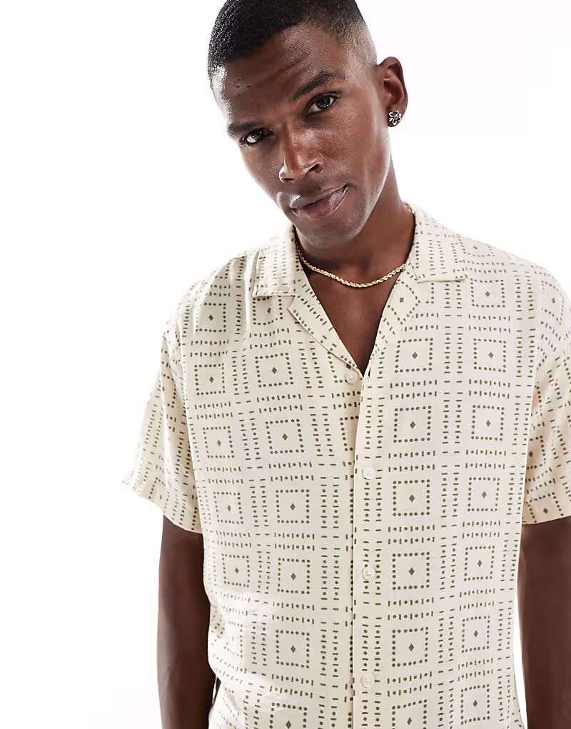 Рубашка Jack & Jones oversize с принтом плитки бежевого цвета