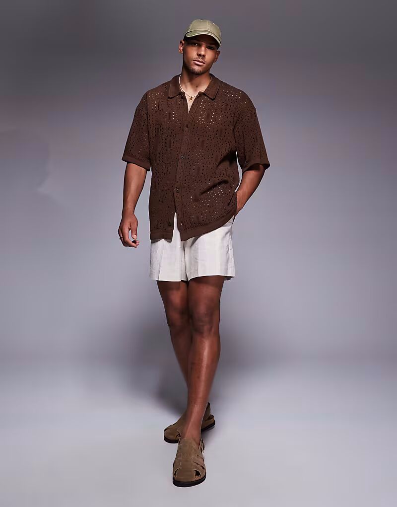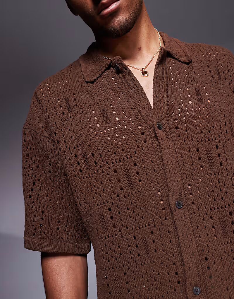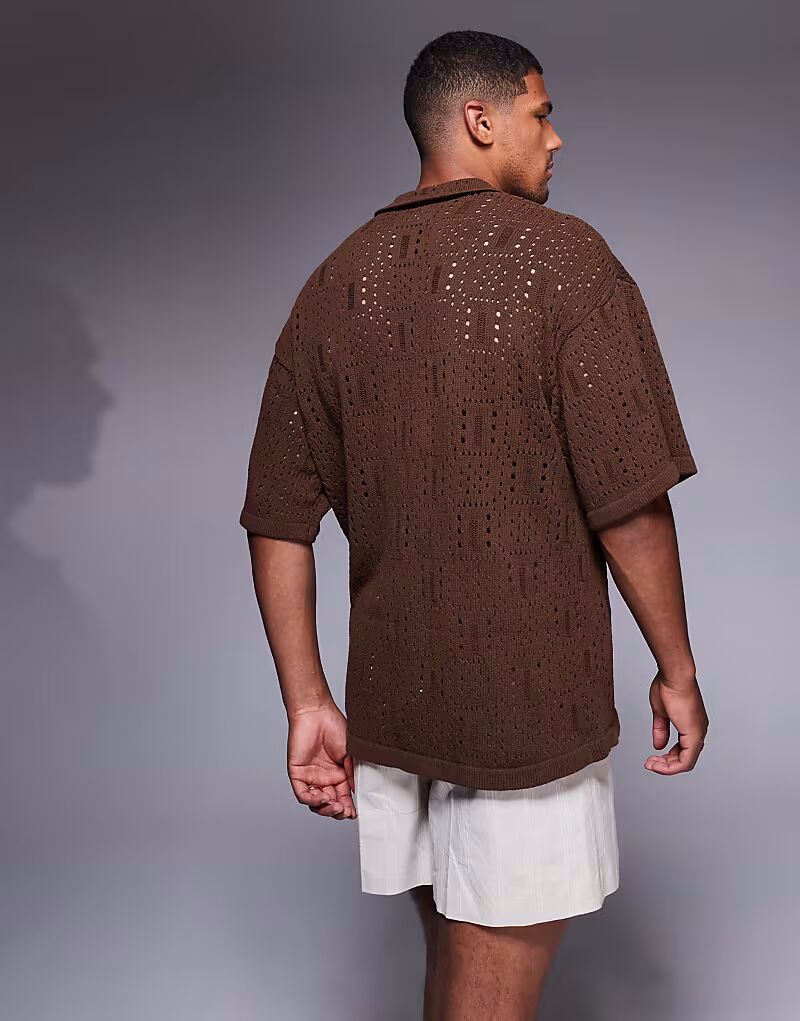 Вязаная крючком рубашка ADPT темно-красного цвета