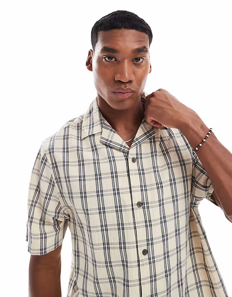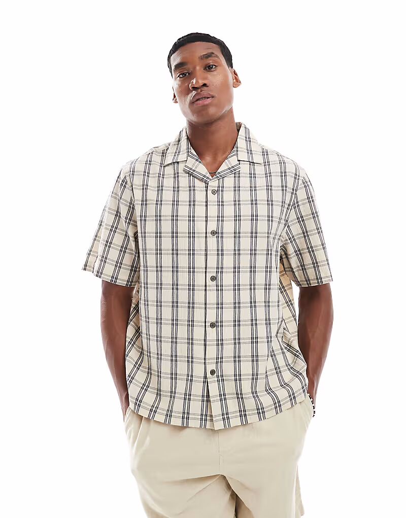 Рубашка с воротником-стойкой River Island в клетку Stone