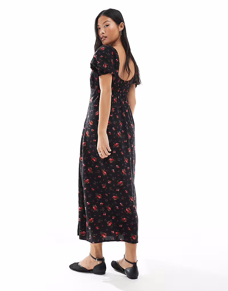 Платье Miss Selfridge Petite spun tea midaxi с принтом черных роз