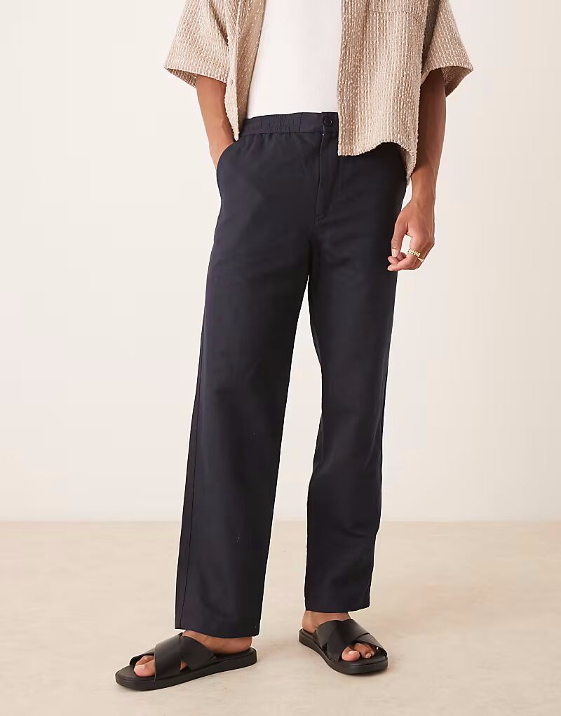 Брюки ARKET из льняной смеси темно-синего цвета