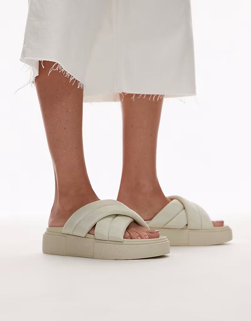 Сандалии Tommy Jeans на плоской платформе в цвете «кремовый»