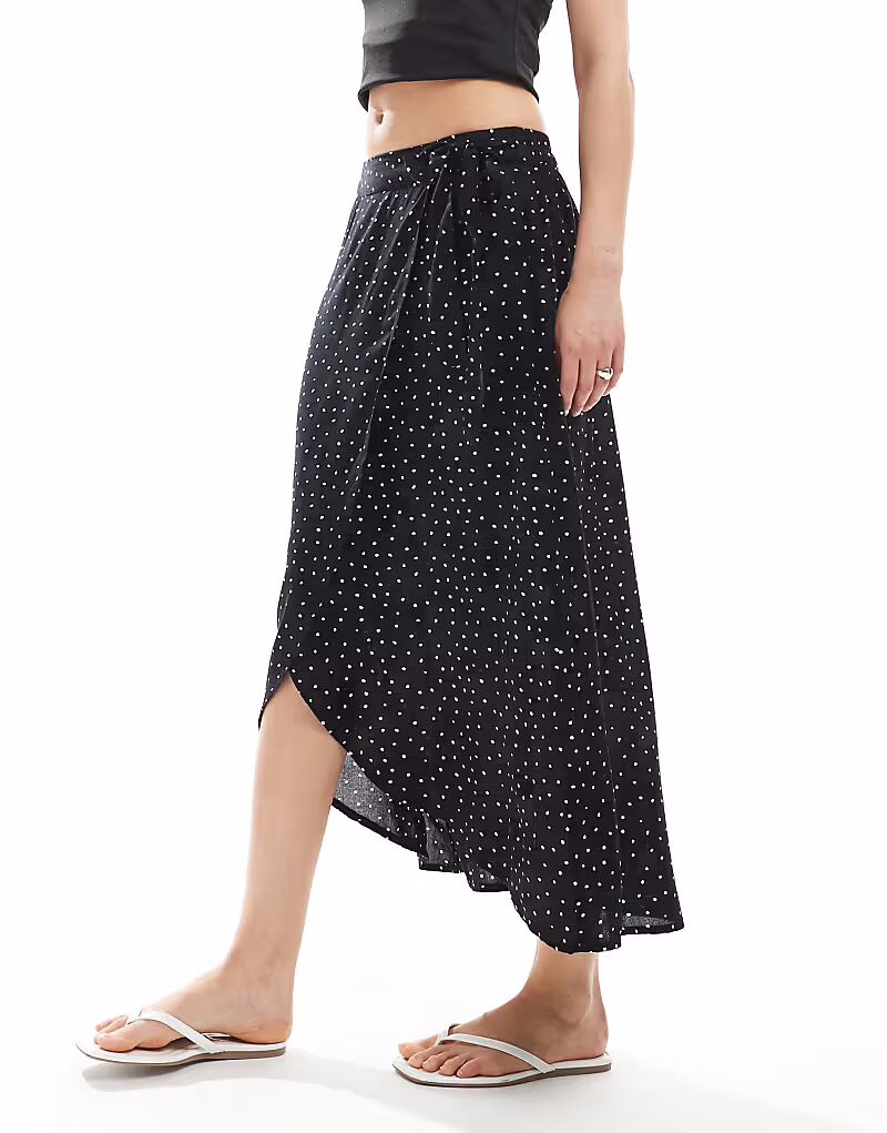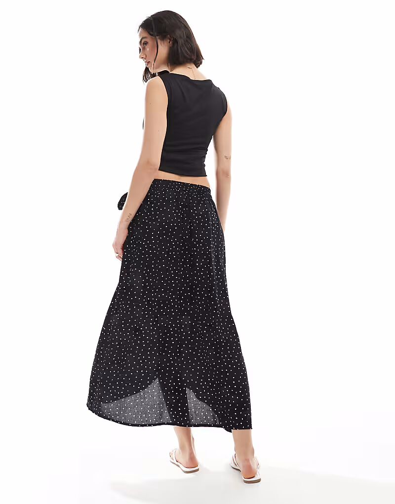 Юбка-миди Pieces с запахом в черный горошек