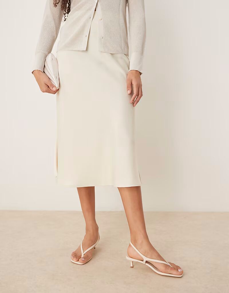 Юбка миди из атласа YAS цвета березовый крем