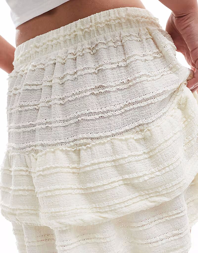 Мини-юбка ONLY с оборками и ярусами в кремовом цвете