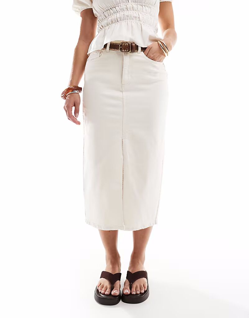 Юбка-миди из денима ONLY с разрезом спереди цвета экрю