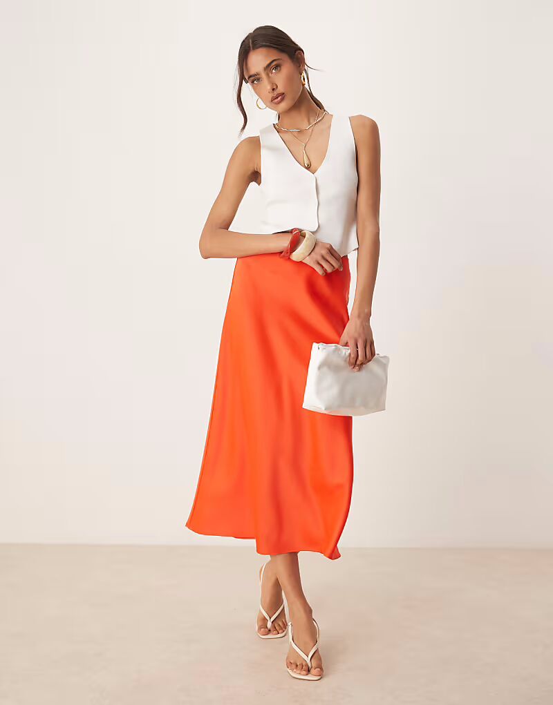 Юбка миди из атласа YAS цвета томатов черри