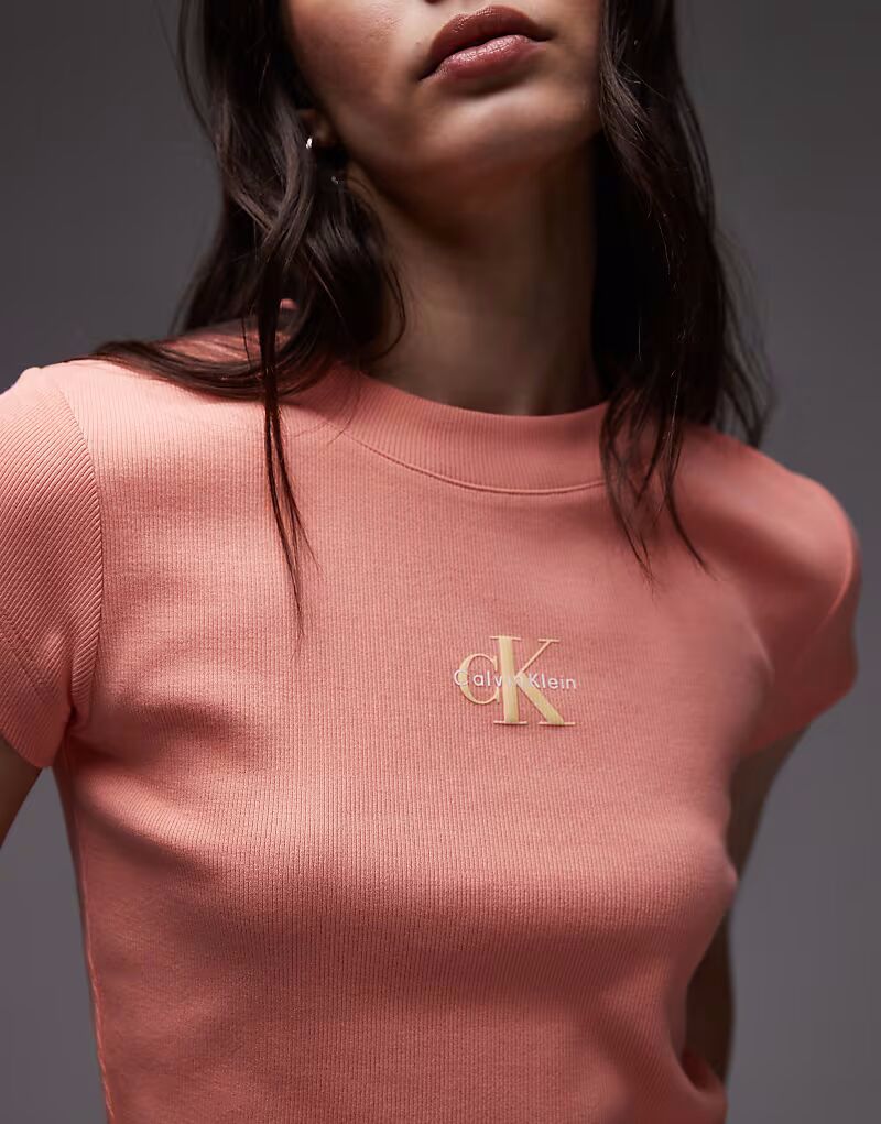 Футболка Calvin Klein Jeans с монограммой для малышей персикового цвета 2 738₽