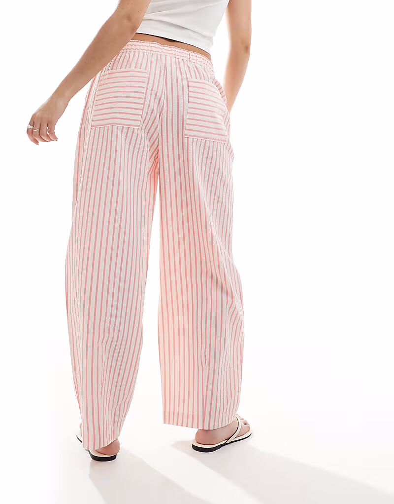 Брюки-бочонки ASOS DESIGN из сирсакера в розовую полоску