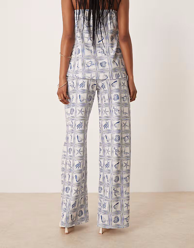 Широкие брюки ASOS DESIGN с синим принтом ракушек