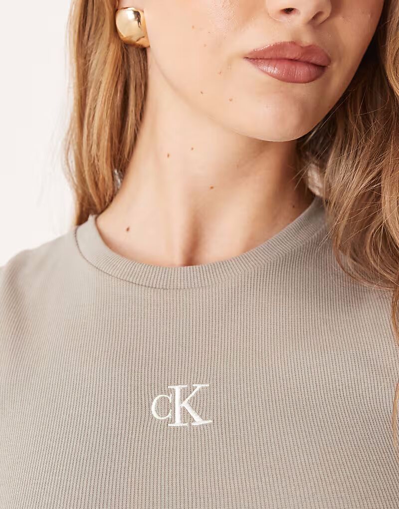 Майка в рубчик Calvin Klein Jeans в каменном цвете