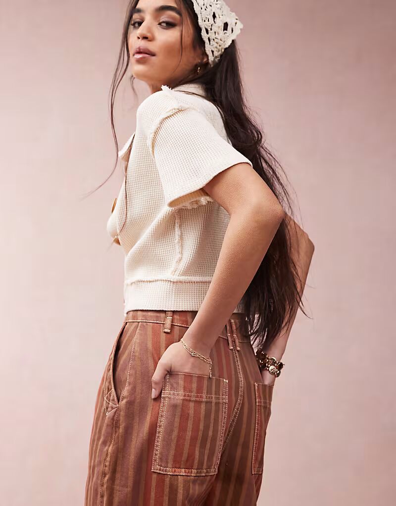 Брюки ASOS DESIGN с потертыми бочонками и полосатым принтом