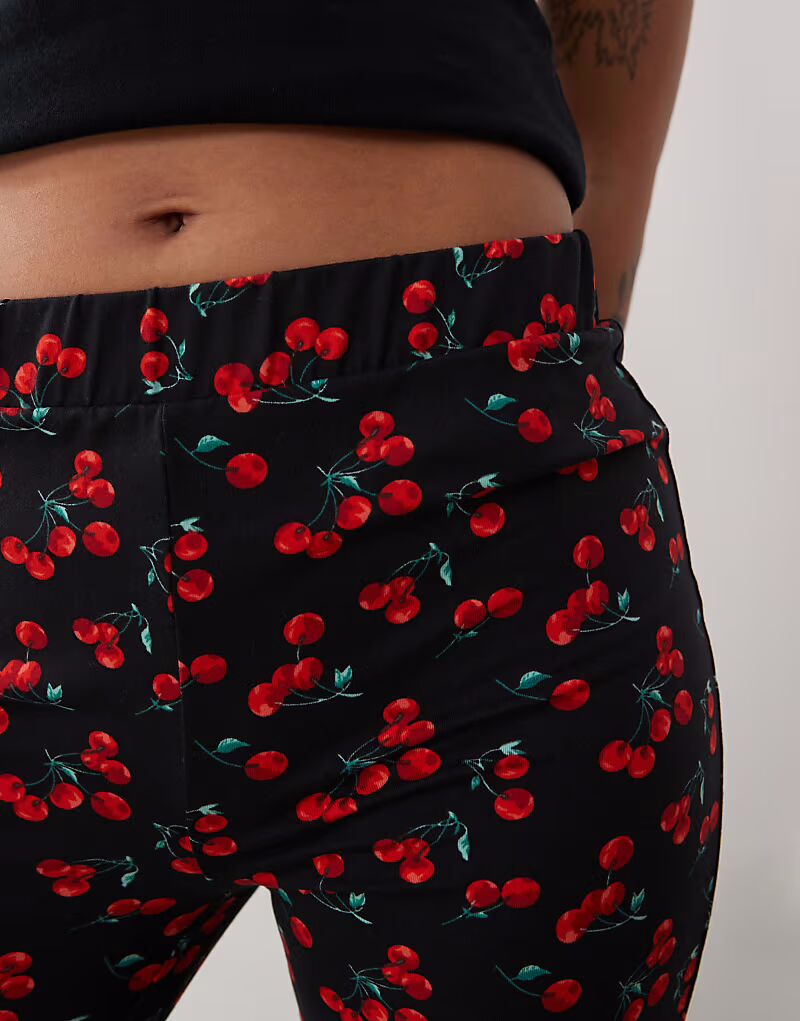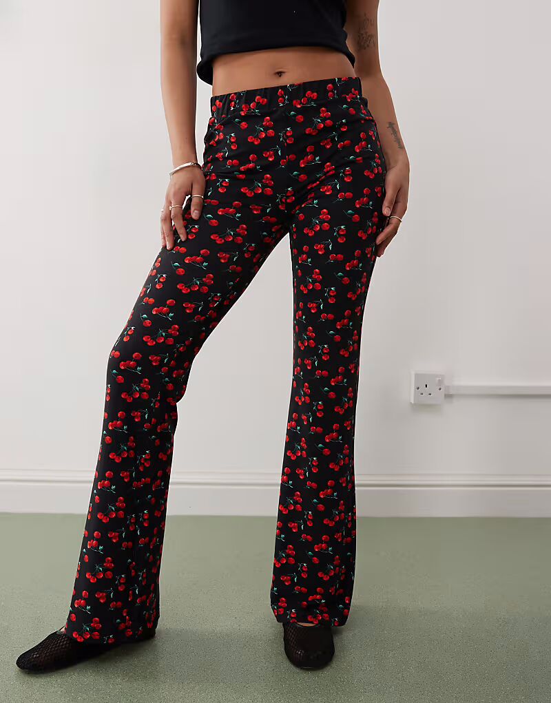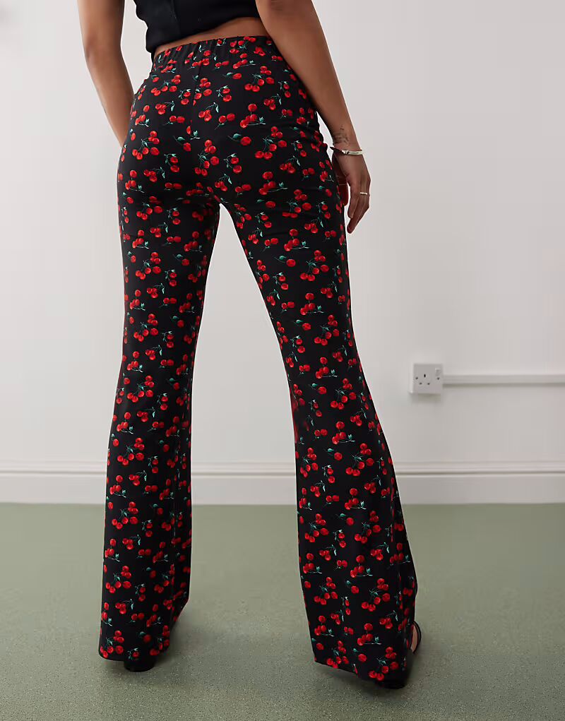 Расклешенные брюки Noisy May Petite с принтом вишни - ЧЕРНЫЕ