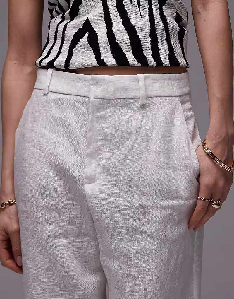 Льняные брюки Mango, приталенные в белом цвете