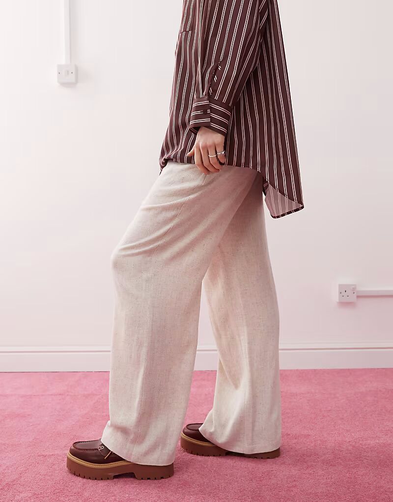 COLLUSION свободные тканые брюки со льном в камне - STONE