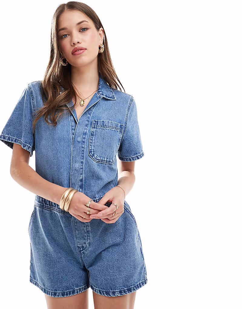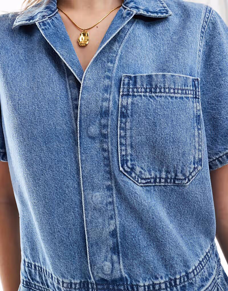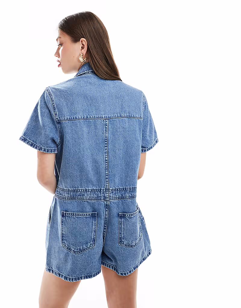 Джинсовый комбинезон ASOS DESIGN в цвете «полувымытый синий»