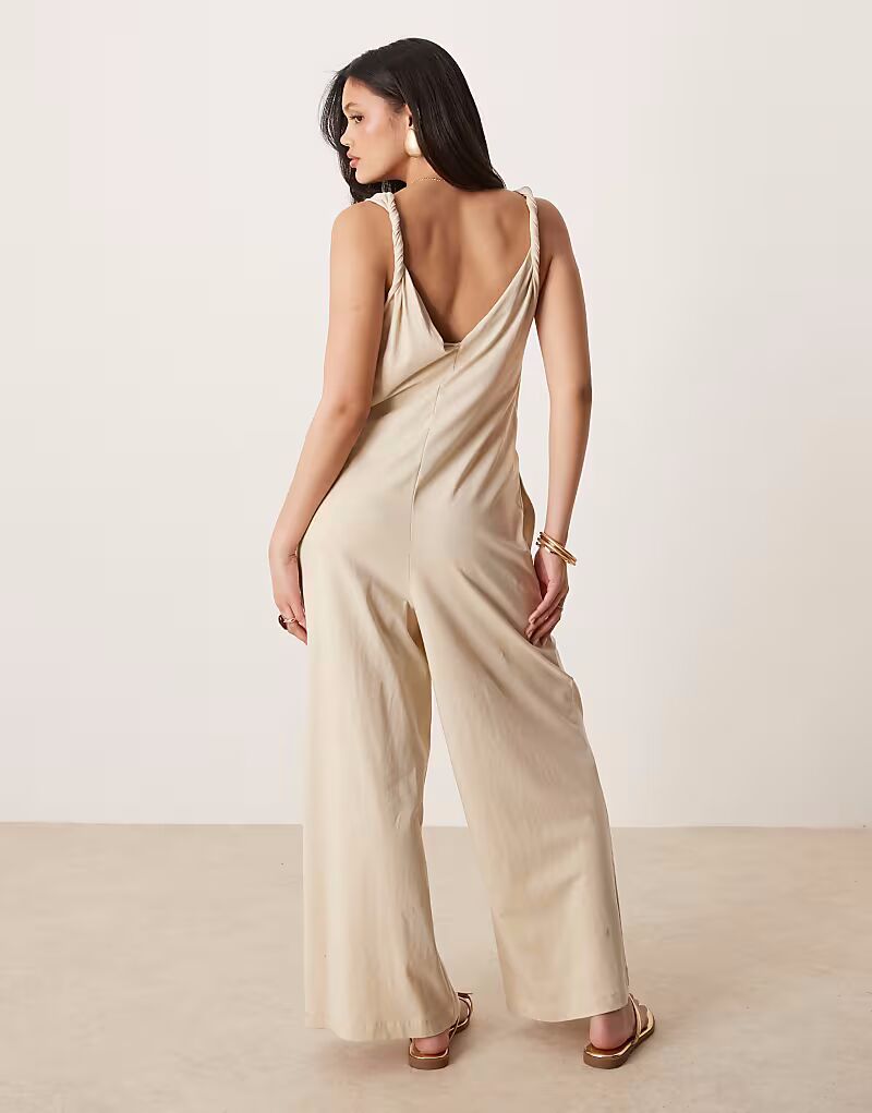 Комбинезон с перекрученными плечами ASOS DESIGN в каменном цвете