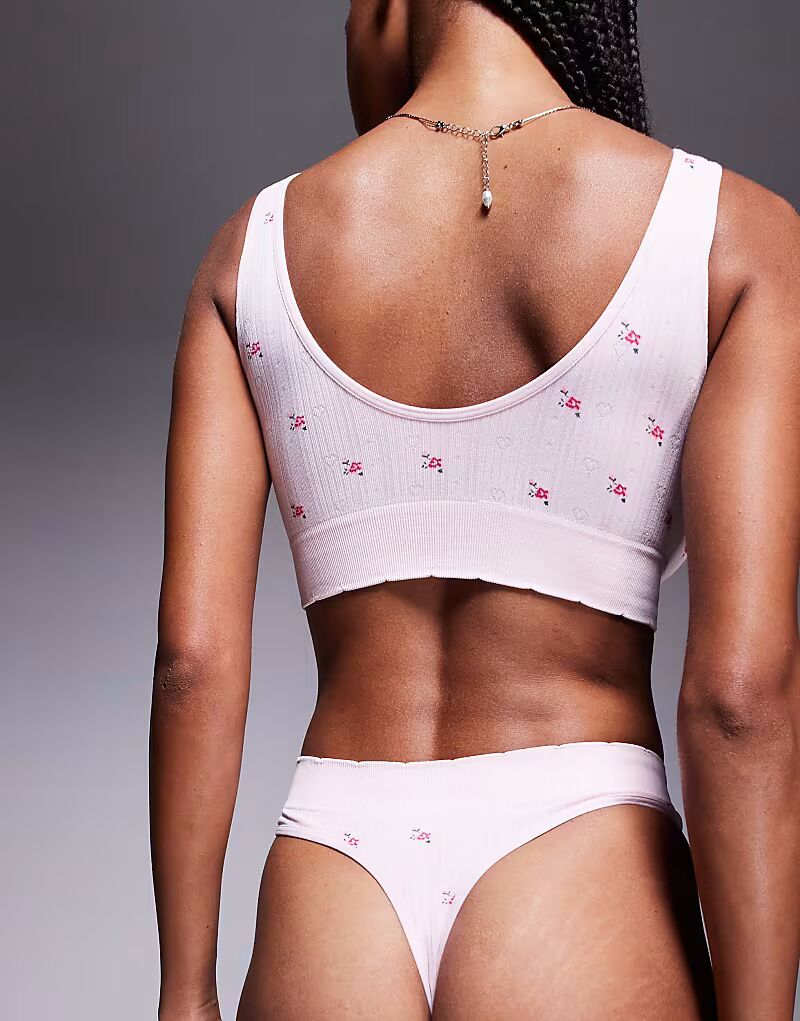 Трусики-стринги Boux Avenue с принтом роз розового цвета 3 779₽