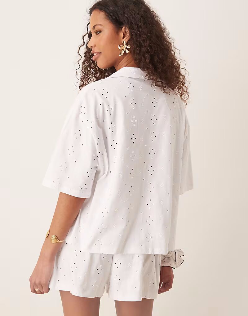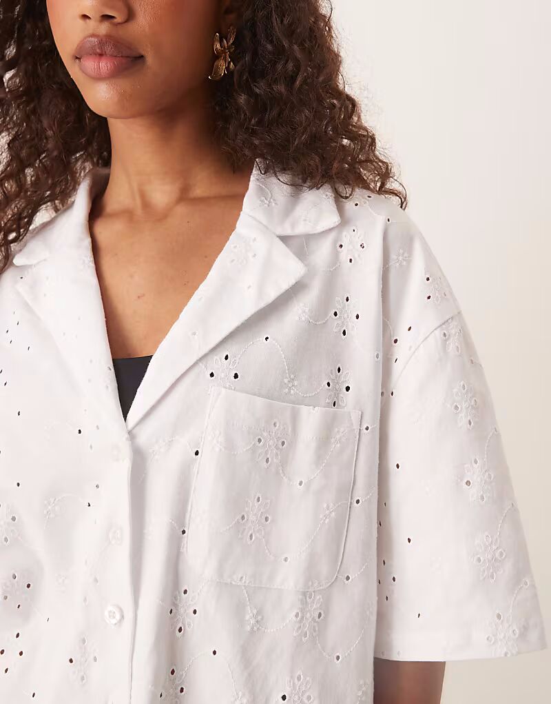 Рубашка-курорт ASOS DESIGN с вышивкой бродери белого цвета
