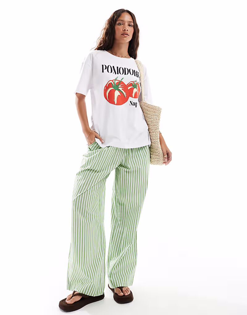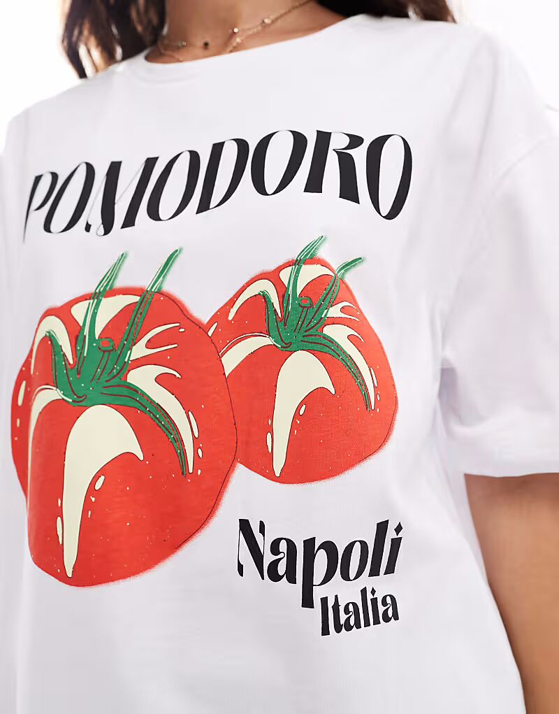 Футболка Pieces oversize с принтом Pomodoro белого цвета